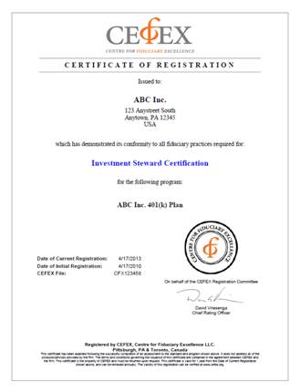 • The optional CEFEX Profile can be helpful in promoting and describing your certification. As a case study, it may get additional exposure if distributed throughout the fiduciary community and at our conferences.